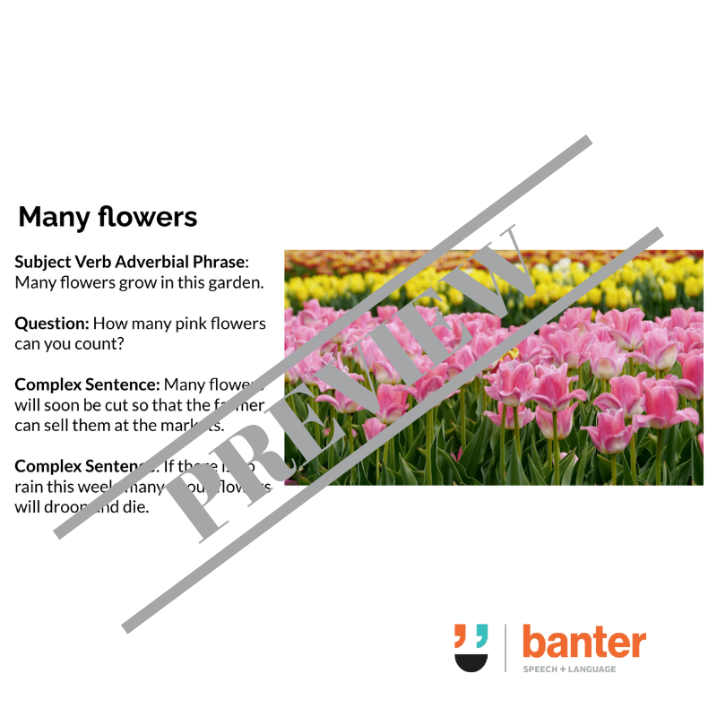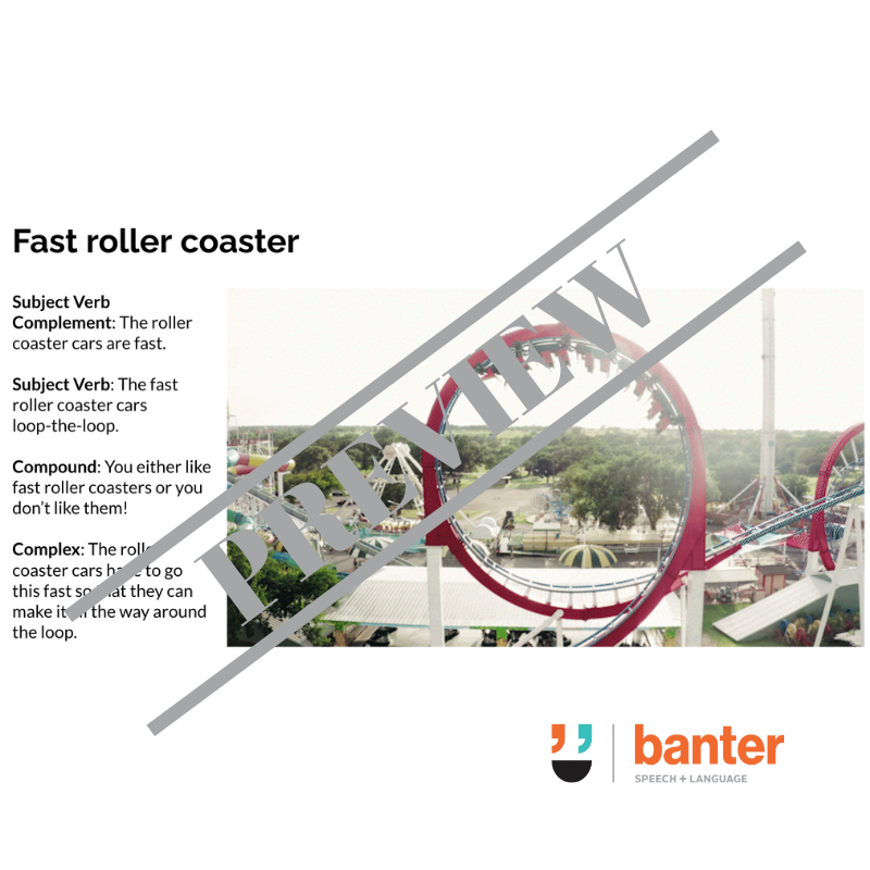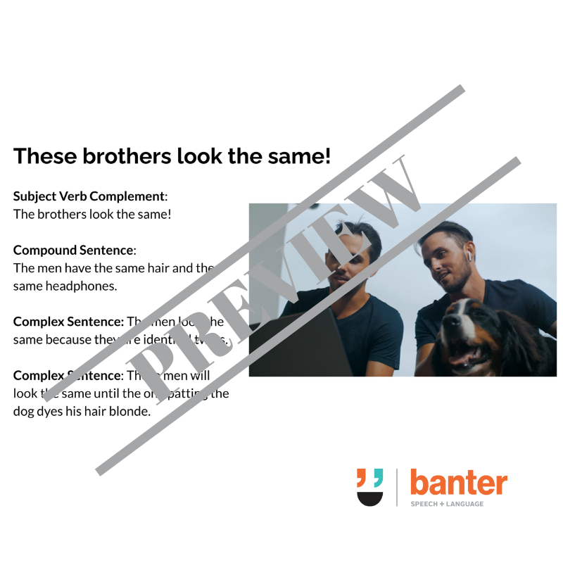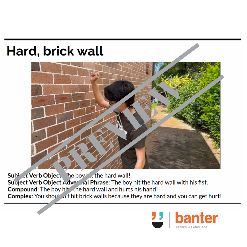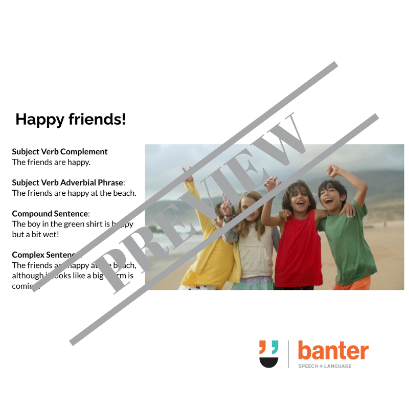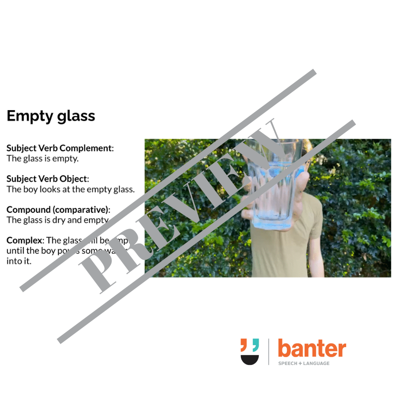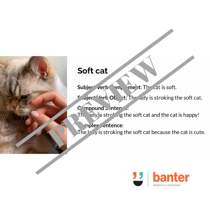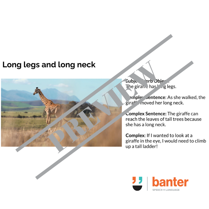 More than 200 pages of fully-scripted, oral language exercises, with GIF-based video models of simple, compound and complex sentences featuring early language concepts in context with suggestions about how to work on the concept in everyday life. Scripted modules for: