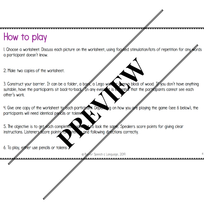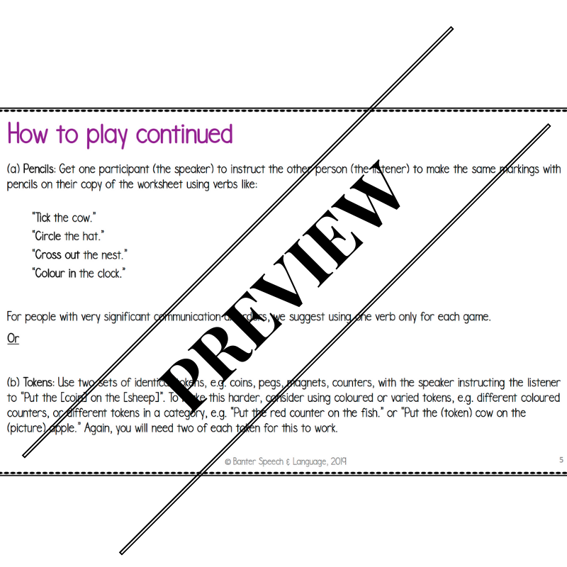 More than 80 pages of fully-scripted, oral language exercises. Includes barrier tasks and worksheets to support preschoolers and young school-aged children to practice: