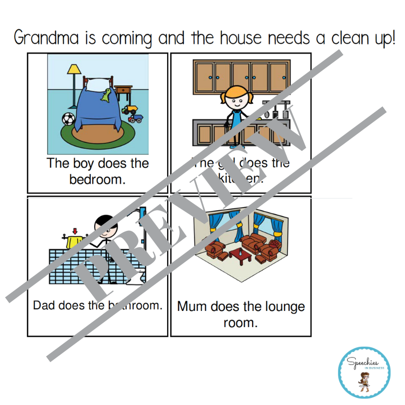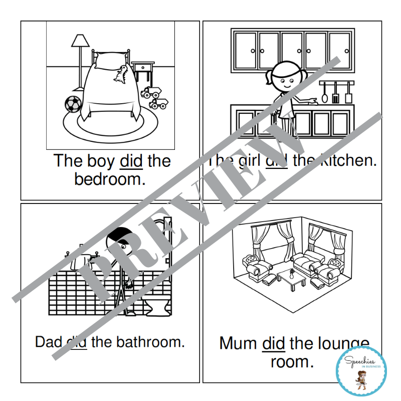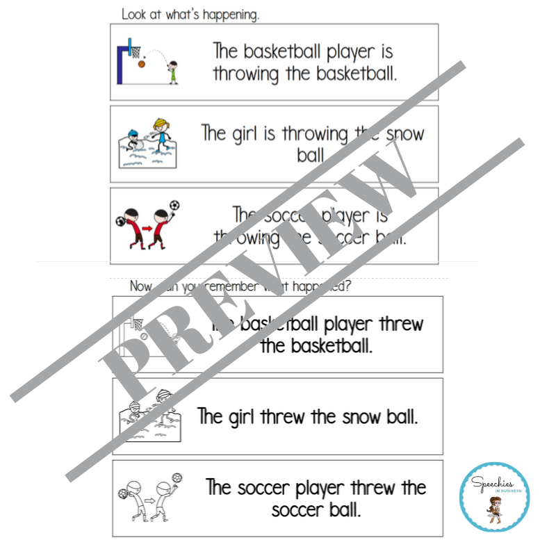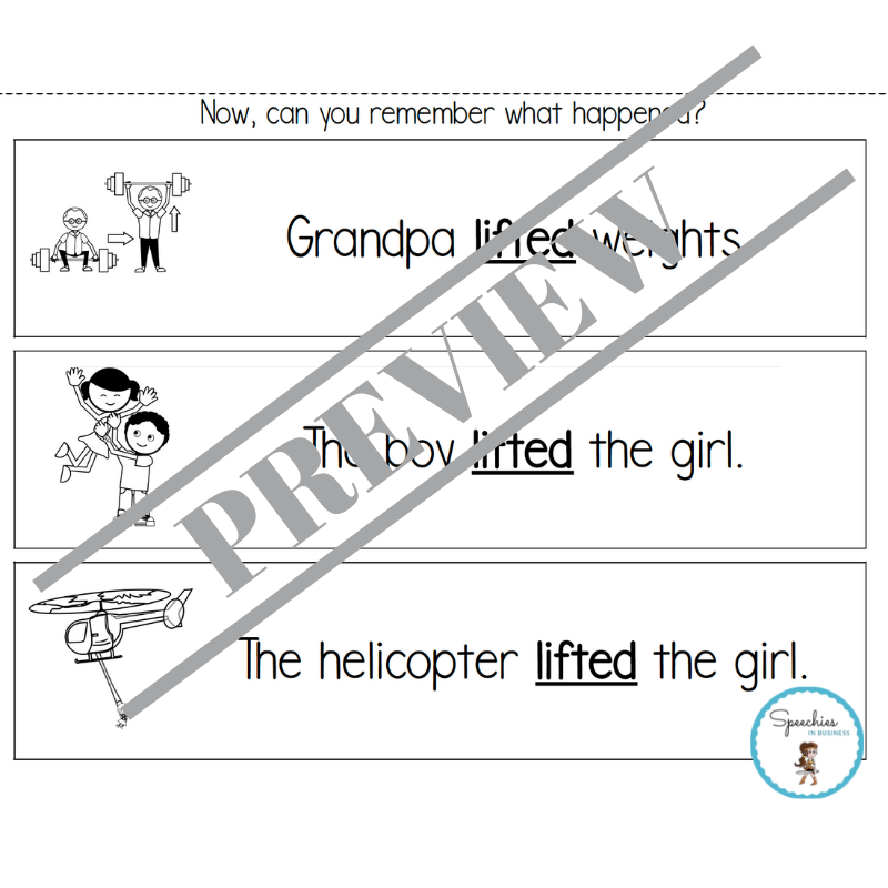 More than 400 pages of fully-scripted, past tense verb exercises with visual supports to help children to learn and use high-frequency regular and irregular past tense verbs: