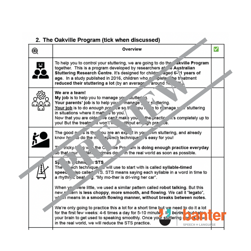 For speech-language pathologists who want to trial the Oakville Program, we’ve written a 39-page mini-client handbook composed of introductory sessions to the Oakville Program, broken into three, fully-scripted modules.