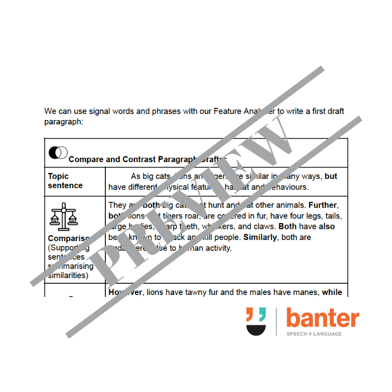 6. Sixth, we teach how to write paragraphs that compare and contrast items, again using semantic features and characteristics.